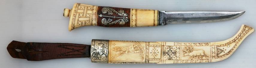 knivmakare för de flesta av oss. Slidan är lite ovanlig med en skidåkande same