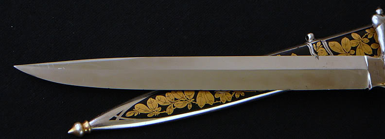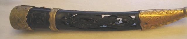 med genomskuren ebenholts i slidan, guldförgylda beslag och i